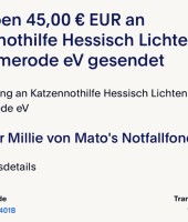 | 10.02.2024 | Notfallfonds | 45,- Euro | Katzennothilfe e. V. |