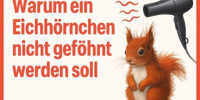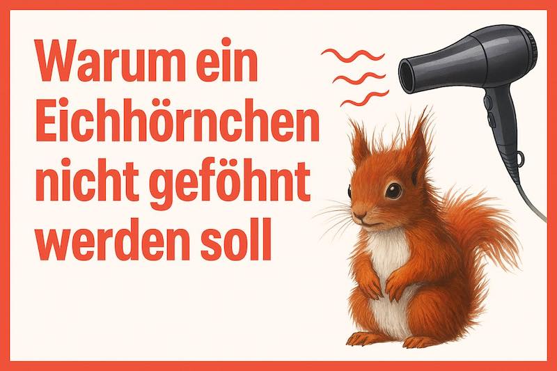 Wenn ein Eichhörnchen nass geworden ist, liegt die größte Gefahr in Unterkühlung. Viele Menschen greifen dann instinktiv zum Föhn – doch das ist für die Tiere hochgefährlich: