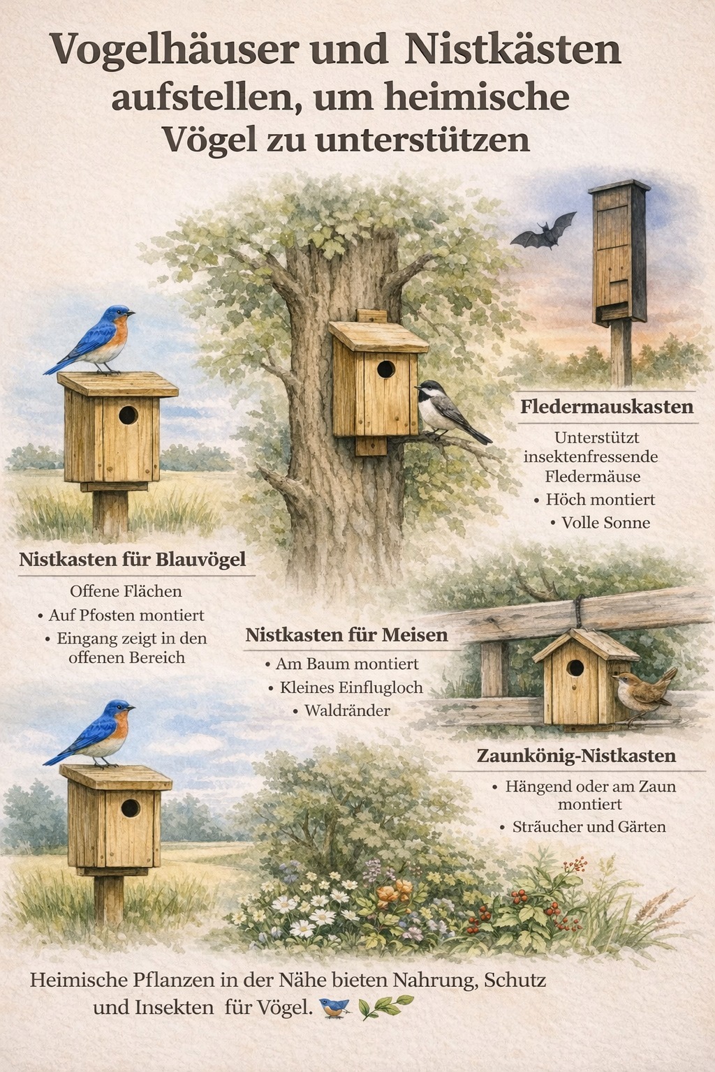 Viele Vogelarten finden heute immer weniger natürliche Nistplätze. Alte Bäume mit Höhlen verschwinden, Gärten werden aufgeräumter und Gebäude bieten kaum noch Möglichkeiten zum Brüten. Vogelhäuser und Nistkästen sind deshalb eine einfache und sehr wirkungsvolle Möglichkeit, heimische Vögel zu unterstützen.